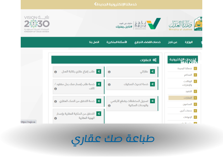 موقع وزارة العدل السعودية من خلاله يمكنك الاستفادة من خدمة “استعلام صك الكتروني”، وكذلك خدمة “إصدار صك بدل تالف”، ويكون ذلك هكذا:
